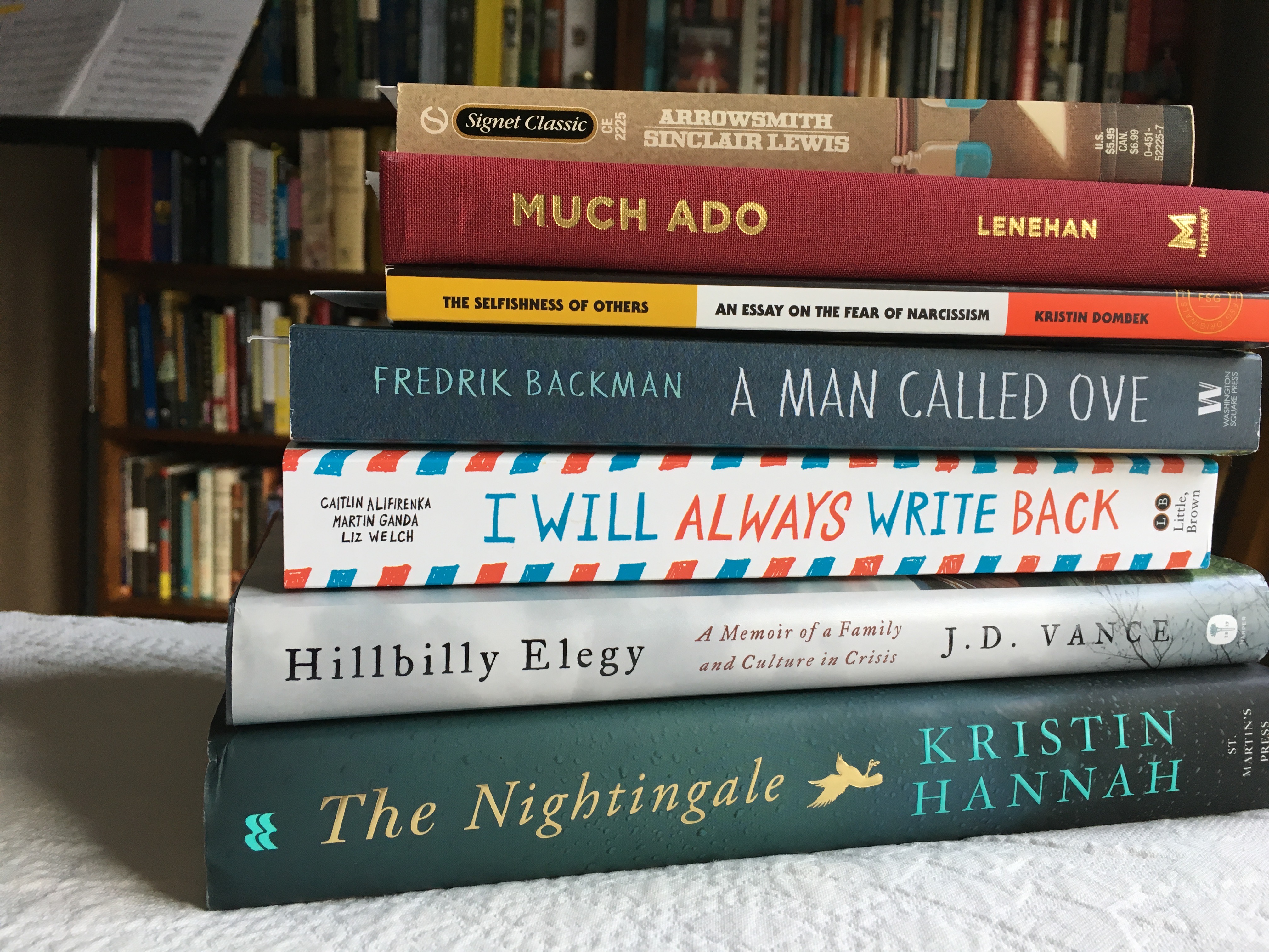 ■ The Selfishness of Others: An Essay on the Fear of Narcissism is my “reading in the theater before the show begins” book, so it has been set aside several times. A fascinating look at our culture’s obsession with narcissism, it included a reference to Anders Breivik that reminded me that One of Us: The Story of Anders Breivik and the Massacre in Norway (Åsne Seierstad; 2015) is in my collection. (One of Us was one of the best books I read last year — and I don’t say that about every book I read, Mr. Kogan. Heh, heh, heh.) We have two more plays before our winter break concludes, so I suspect I will soon add Selfishness to my list of books read.
