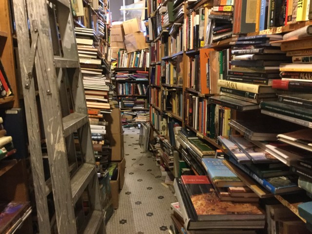 Last weekend, between Fun Home at Victory Gardens (highly recommended) — and Machinal at the Greenhouse Theatre Center (excellent but now closed), we visited the bookstore pictured above. It’s even cooler in person.