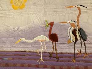 Detail from Pauline Parker’s “Frog Hunt” quilt (1999)