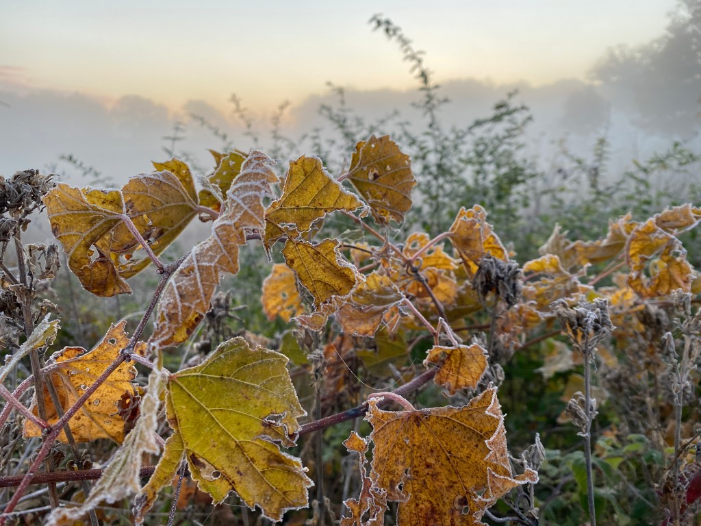 October 23, 2021 First frost By Nerdishly ¶ Posted in nature ¶ Leave a comment No filter needed. We rose early to be on the trail before sunrise. Our reward was the chorus of many, many birds preparing to migrate. Share this: Click to share on X (Opens in new window) X Click to share on Facebook (Opens in new window) Facebook Like Loading... Related