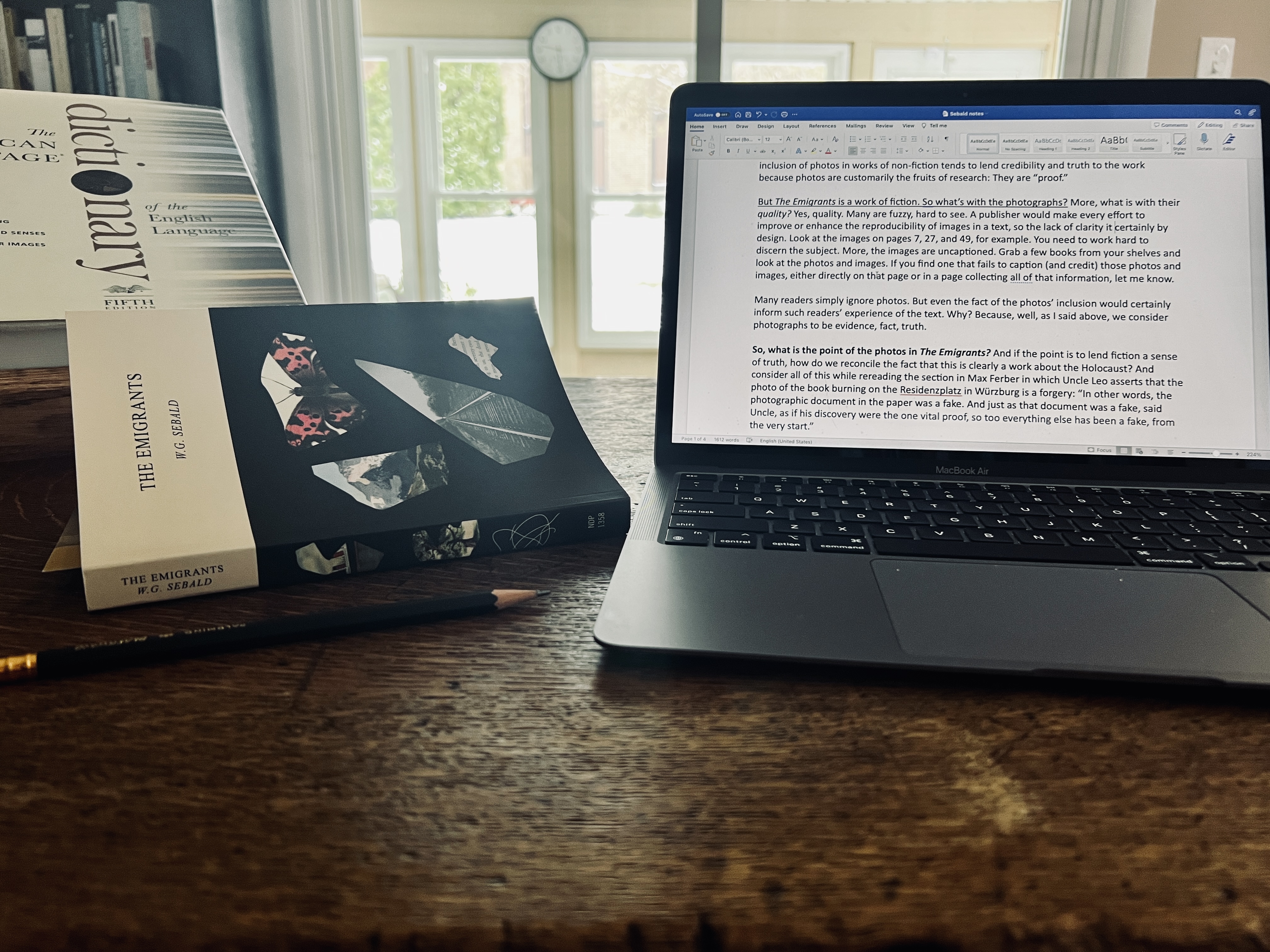So, what is the point of the photos in The Emigrants? And if the point is to lend a fictional narrative a sense of truth, how do we reconcile the fact that this is clearly a work about the Holocaust? And consider all of this while rereading the section in Max Ferber in which Uncle Leo asserts that the photo of the book burning on the Residenzplatz in Würzburg is a forgery (p. 1830: “In other words, the photographic document in the paper was a fake. And just as that document was a fake, said Uncle, as if his discovery were the one vital proof, so too everything else has been a fake, from the very start.” If we use photos to signal truth, don’t faked or forged photos deny truth?