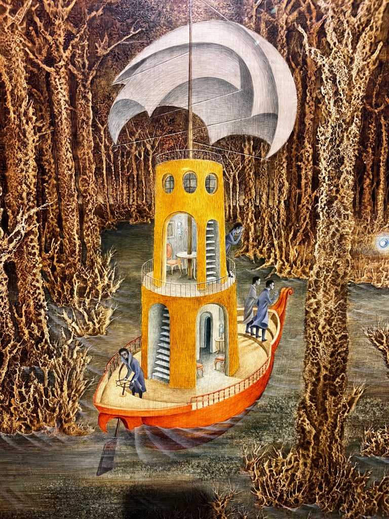 The images above are my photos of detail from the following paintings in Remedios Varo: Science Fiction: