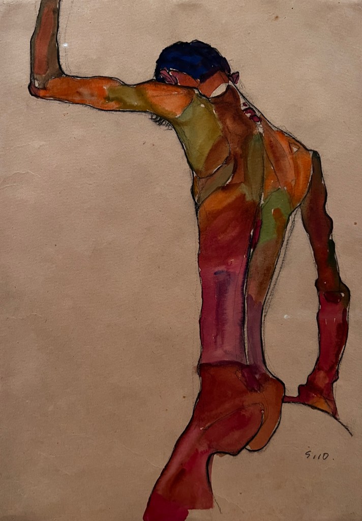 ✤ Egon Schiele. Standing Male Nude with Arm Raised, Back View. 1910
