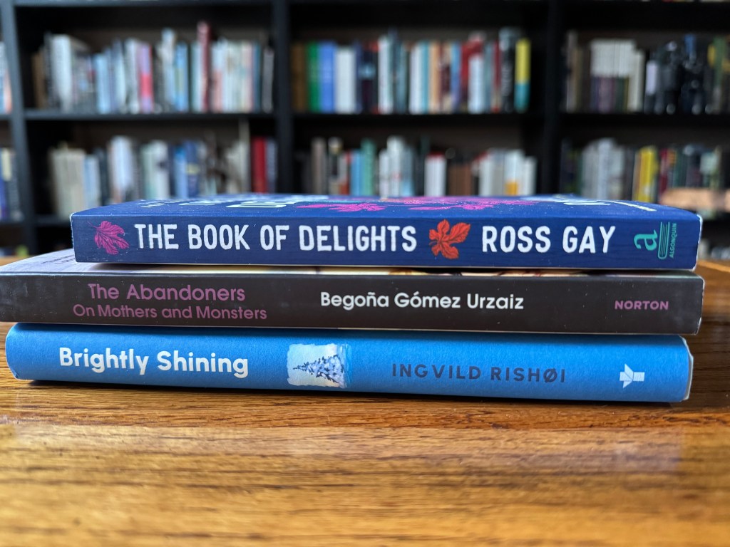 May 2020 was the perfect time to first encounter Ross Gay’s The Book of Delights (2019). For some reason, this treasure was only in my Kindle library, so when I recently gave the book as a gift, I grabbed a hard copy for myself. Speaking of gifts, Brightly Shining (Ingvild Rishøi; 2024) was one that arrived yesterday.