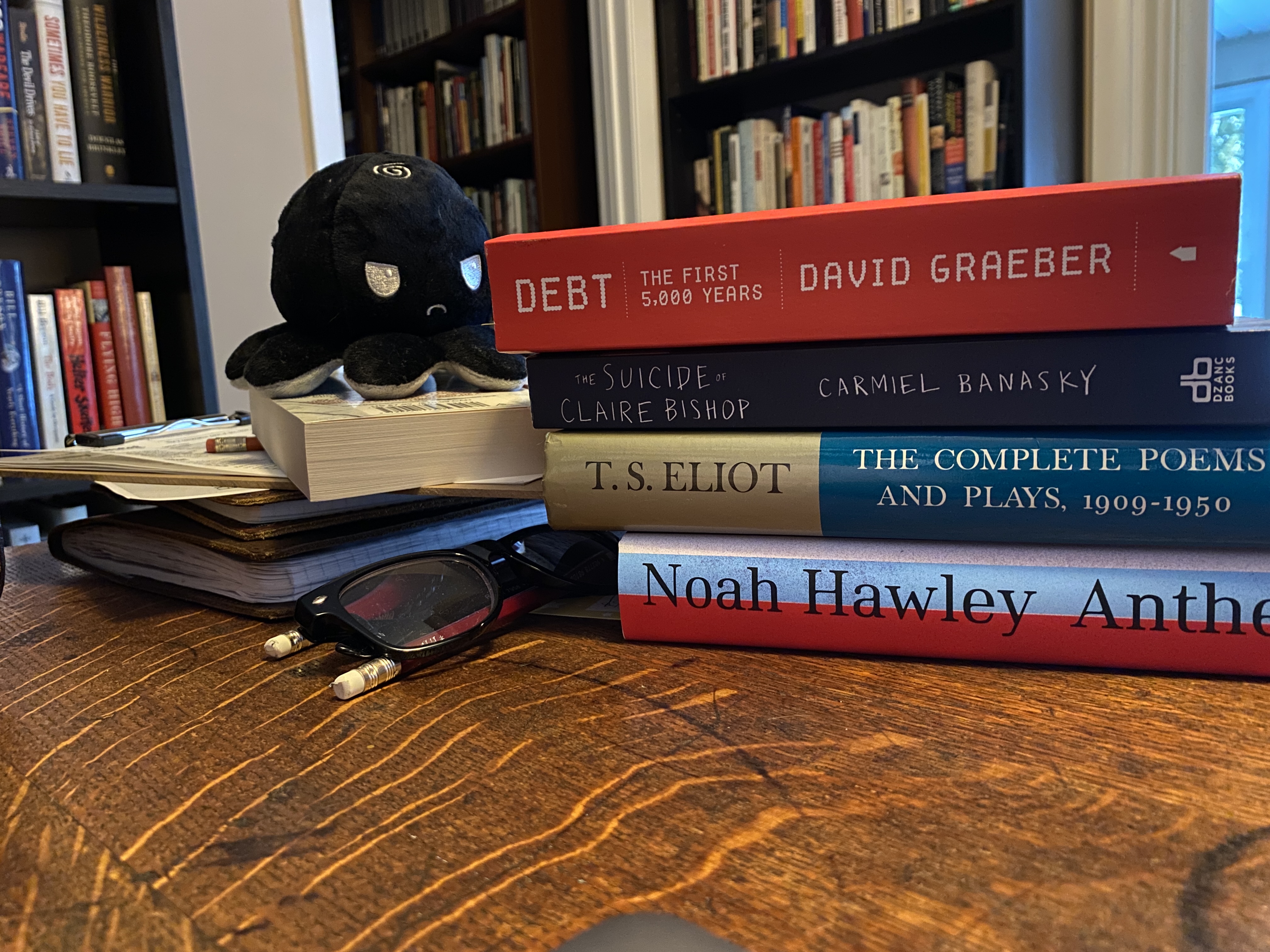 (By the way, if pressed, I’d say Bury Your Dead and A Beautiful Mystery are my favorite books in the Chief Inspector Gamache series.) I finally read Eliot’s play last week, at which point, I also toggled two novels, The Suicide of Claire Bishop (Carmiel Banasky; 2015) and Anthem (Noah Hawley), which was just released. A couple of unexpected intersections emerged, including two Claires (titular and Simon Oliver’s sister in Anthem) and discussions / plot points concerning mental health (including suicide), political activism, and religion.