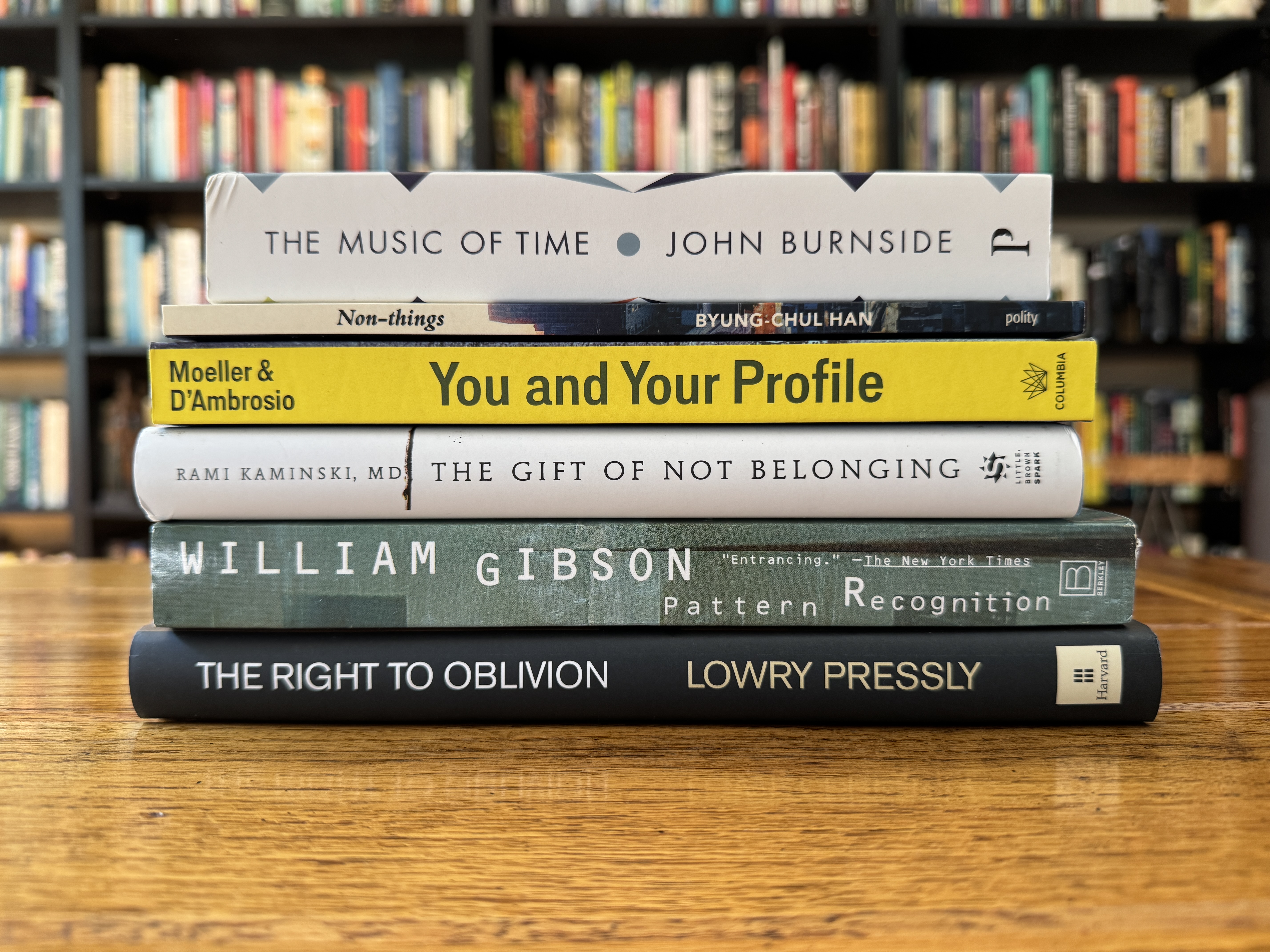 Four of the titles pictured above are selections for the 2026 Philosophical Book Club at Commonplace Philosophy. Speaking of philosophy, my two-person study group will discuss Book IX of Aristotle’s Nicomachean Ethics tomorrow, which means this excellent project draws to a close soon. Next up for us is a deep dive into the novels of E.M. Forster, beginning with Where Angels Fear to Tread (1905). We’ve been reading and studying together for a couple of years now, so it is no surprise that we often discover new books that appeal to us both. Most recently, a Guardian review ensured that Rami Kamiski’s The Gift of Not Belonging ended up on our doorsteps and then at the tops of our respective “actively reading” stacks. Ditto John Burnside’s The Music of Time: Poetry in the Twentieth Century (2021). Both of these are pictured above.