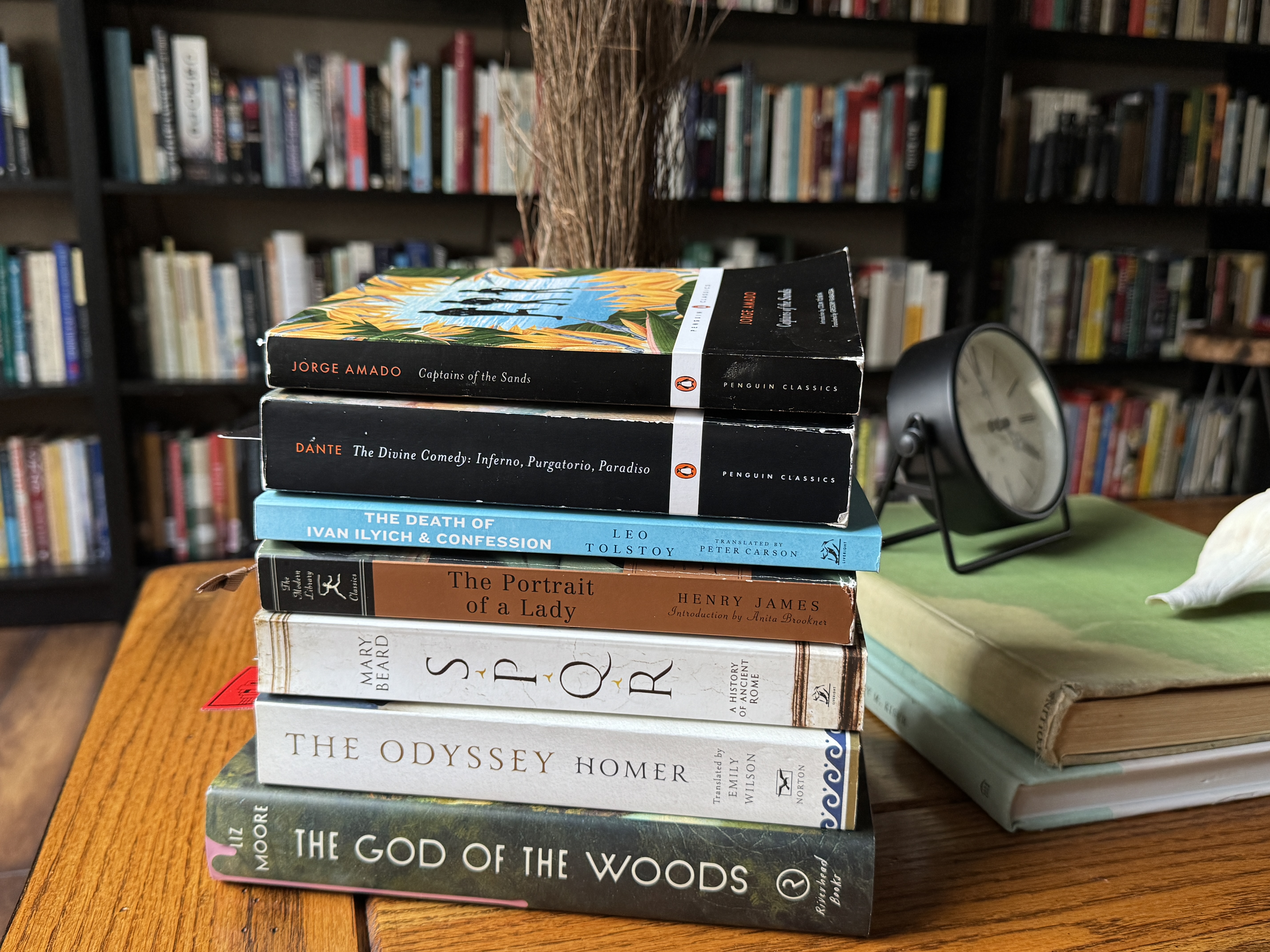 These have been my companions over the last week or so of recuperation. Although I’m not sure I thought the Moore was as amazing as many reviewers did, it was a solid bit of entertainment. Most of the other books are familiar from my sidebar, but the Tolstoy is new… I joined Story Club with George Saunders, an absolute delight. And the Amado is part of the Brazilian literature mini-project on which my youngest and I have embarked.