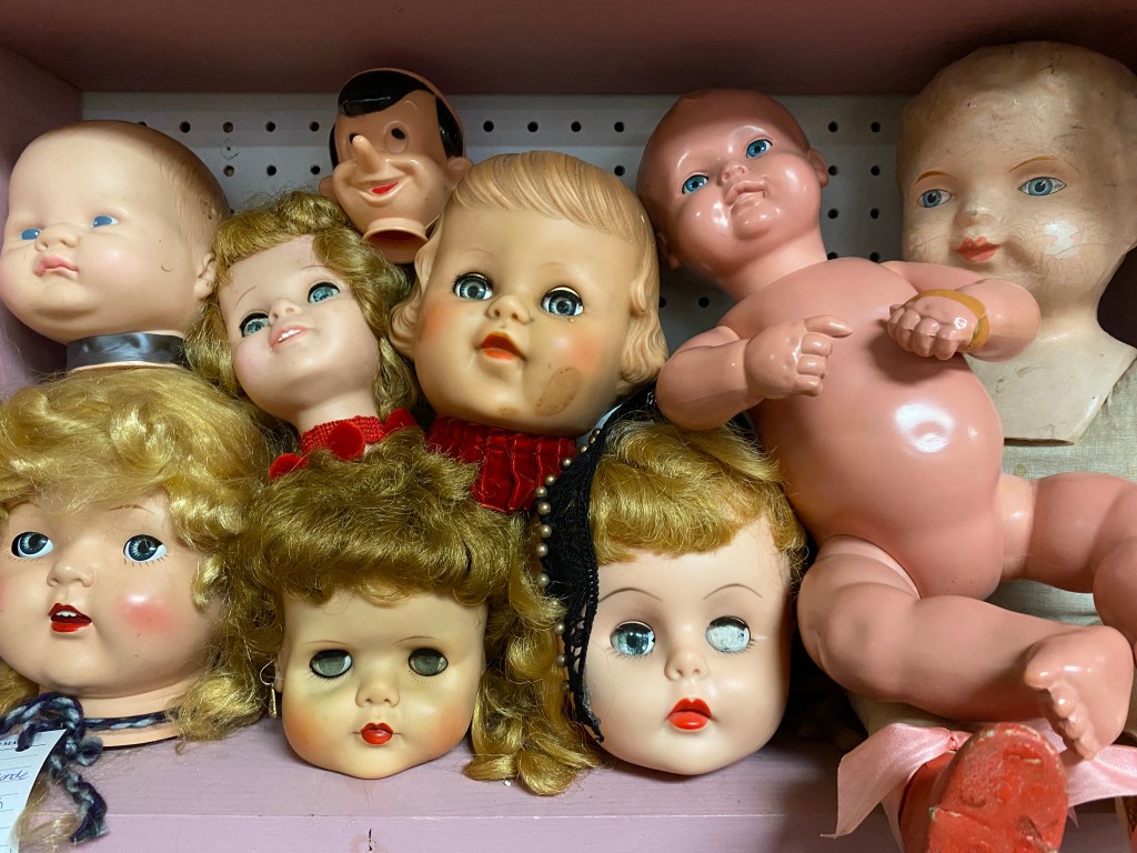 It had been about two years since we had prowled the seemingly unending corridors of the antique mall, so we were comforted this weekend by how mostly unchanged its mood is, despite some vendor changes and a few empty stalls. While we sought treasure, a light snow fell — November on the prairie.